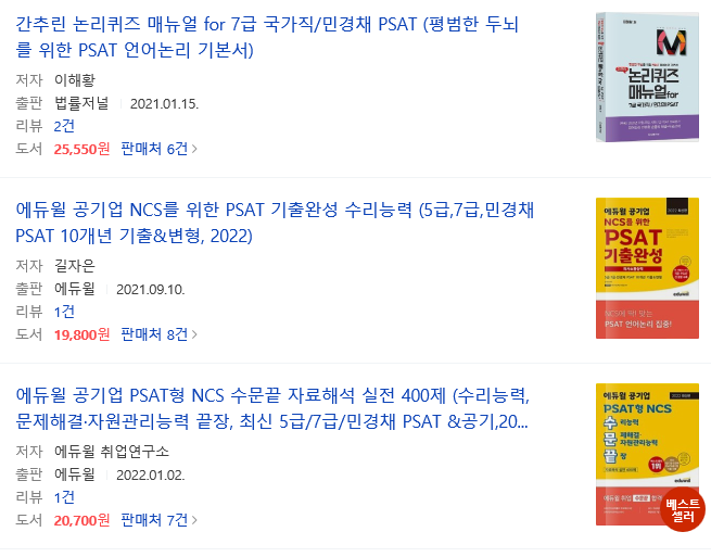 공직적격성평가(PSAT)로 관련 서적들이 시중에 판매되고 있다.