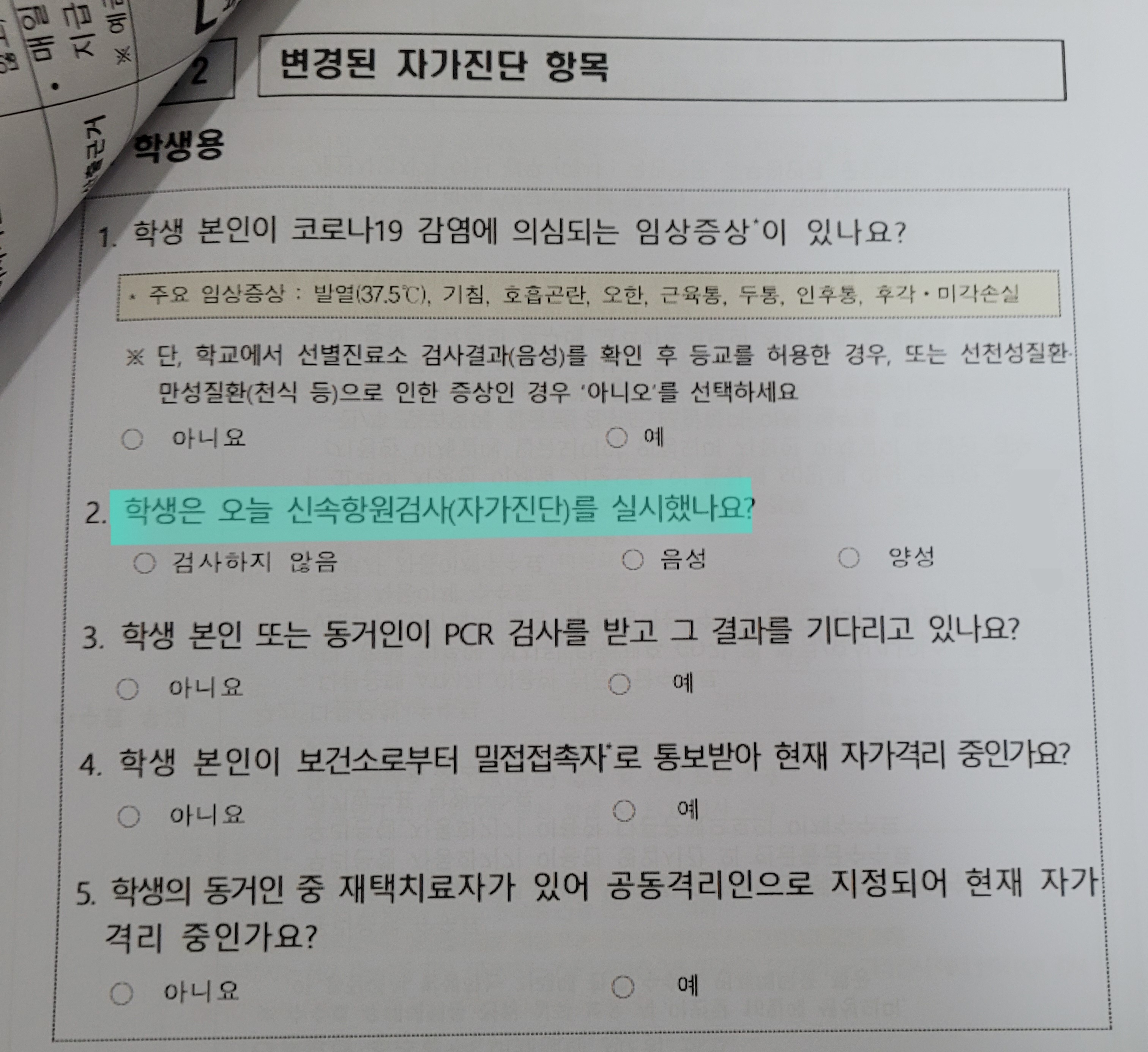 교육부 코로나 자가검진에서 자가진단으로 바뀐 지금.