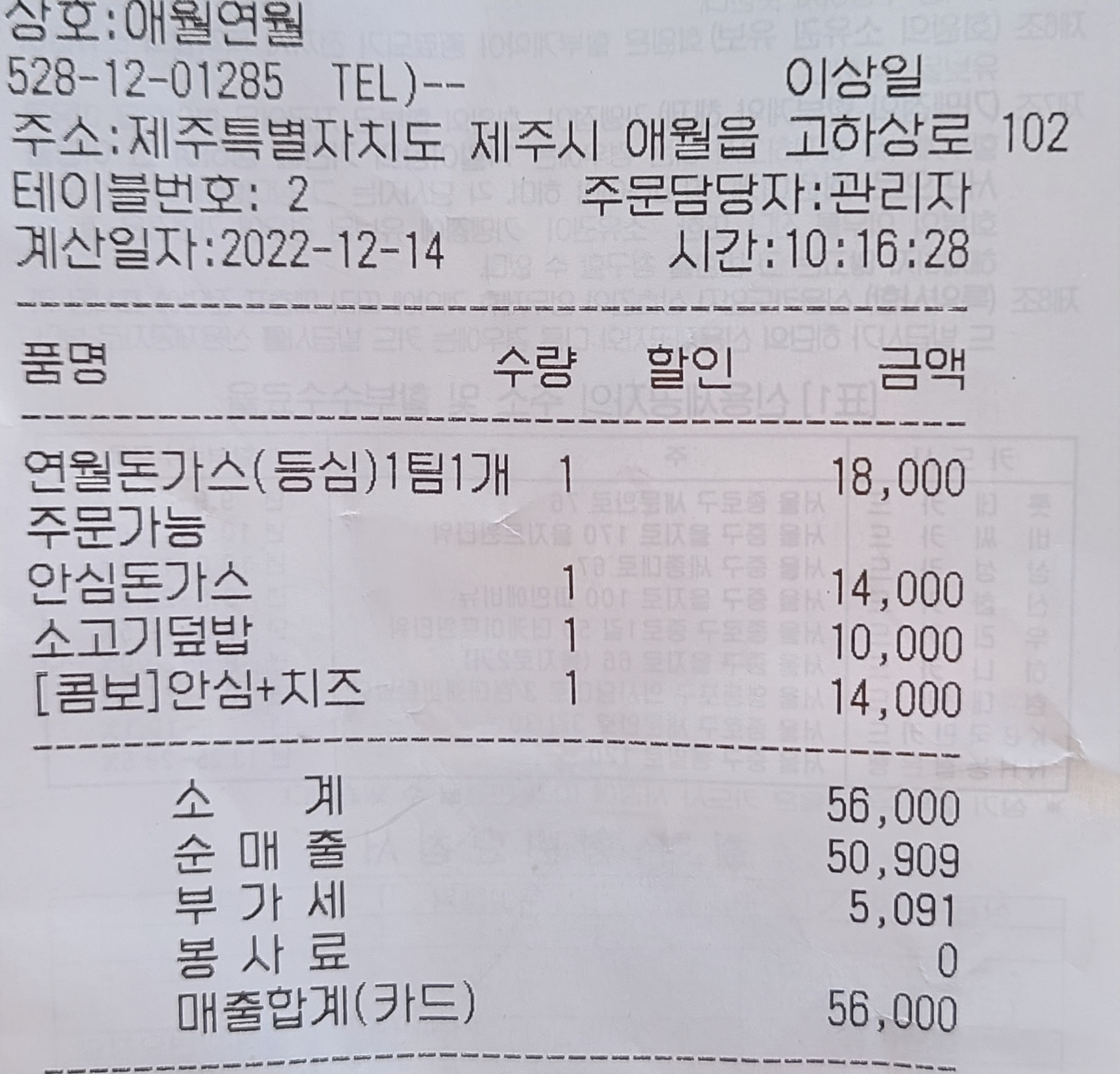 새벽 비행기를 타고 온 터라 너무 배고픈 중에 발견한 9시 30분 오픈! 수제 돈가스! 애월 연월!