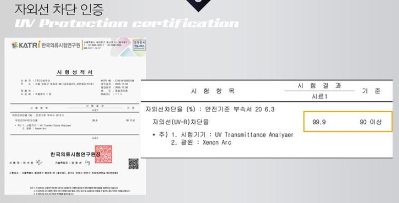 표준 양산 인정기준에 부합한 제품 규격 및 안전성 검사 후 섬유제품의 자외선 차단율 및 차단지수 시험을 통과해야만 표준 양산이 될 수 있습니다.